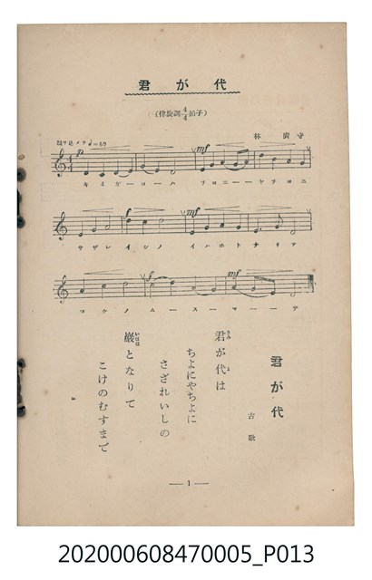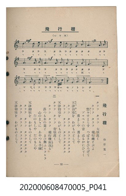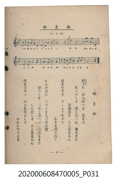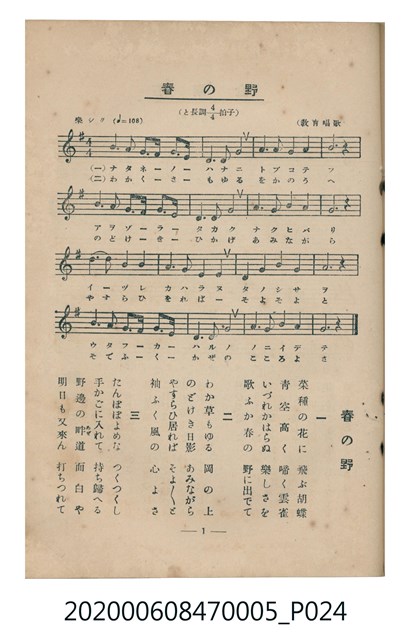 2020.006.0847.0001 日本教育唱歌研究會編《新定兒童唱歌》尋常科第一學年