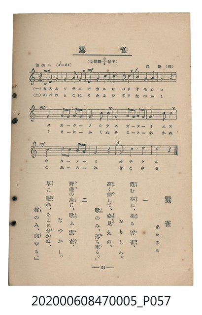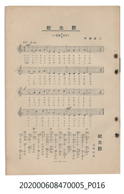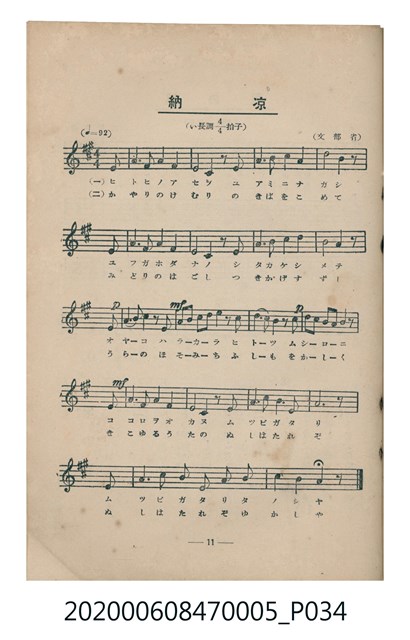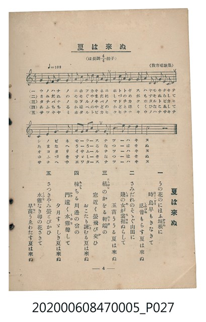2020.006.0847.0004 日本教育唱歌研究會編《新定兒童唱歌》尋常科第四學年