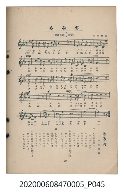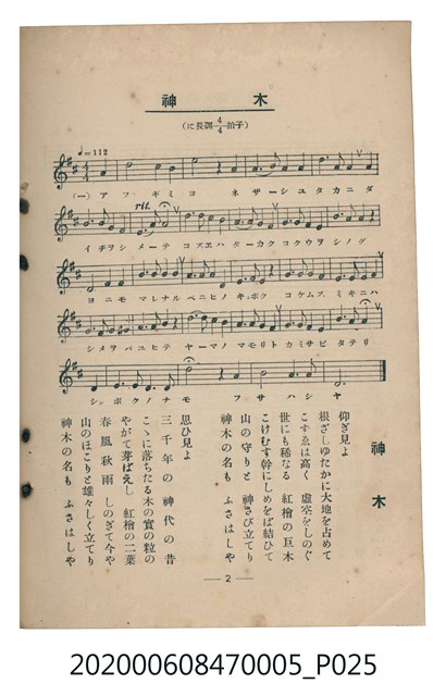 2020.006.0847.0002 日本教育唱歌研究會編《新定兒童唱歌》尋常科第二學年