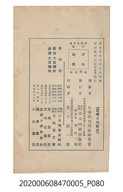 2020.006.0847 日本教育唱歌研究會編《新定兒童唱歌》
