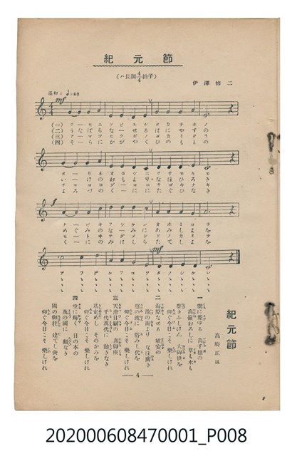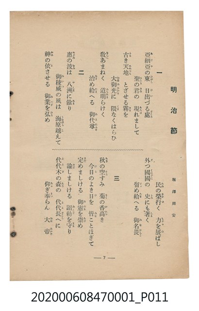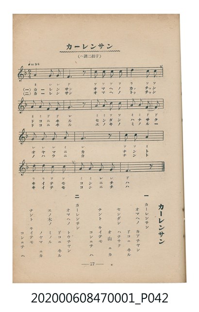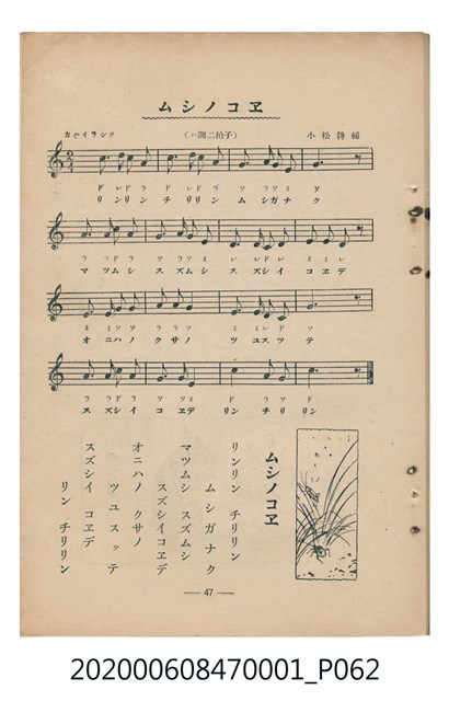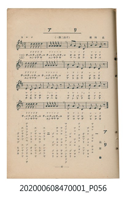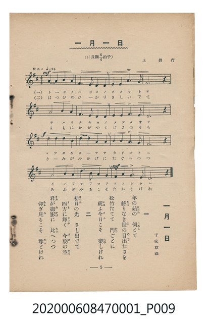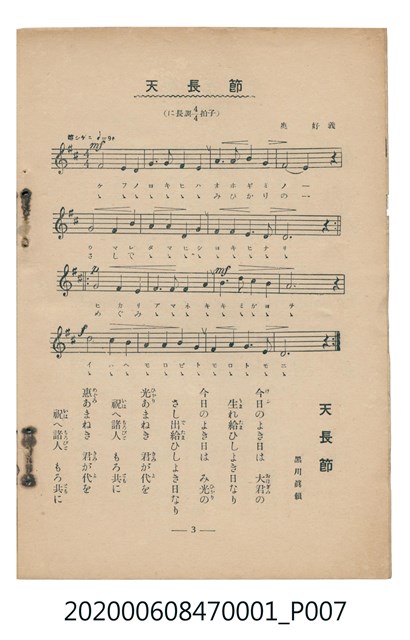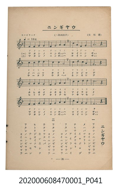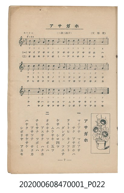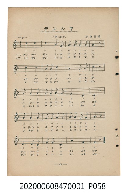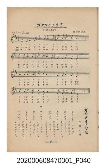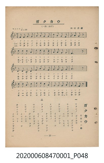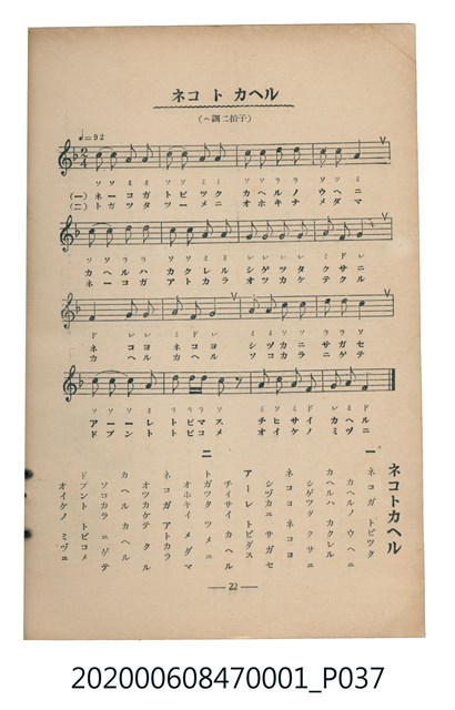 2.日治初期,臺灣總督府便在臺實施音樂教育,具有作為輔助「國語」(日本語)教學和涵養臺灣人德性之功用,臺灣總督府在臺實施的唱歌教育和國語教育,可說是幾乎和日本本國同步實施,另一方面,為教化臺人領略皇國精神,在學校教育中推動的唱歌教育便擔負增進兒童在品德、美感和「國語」(日本語)教育等方面的功能。
