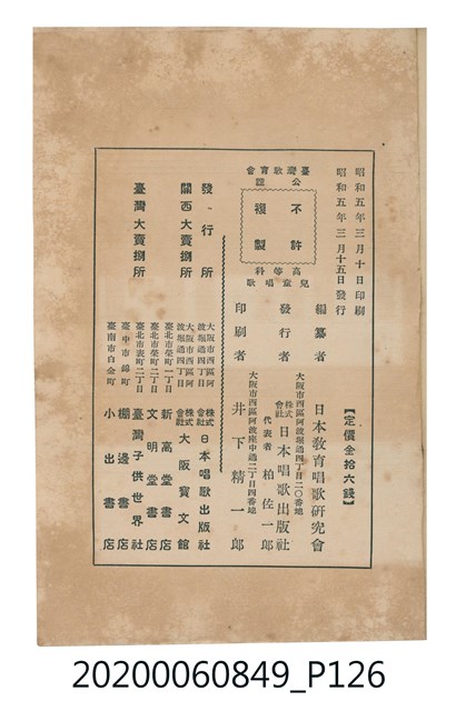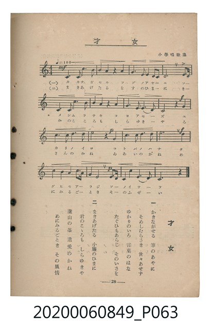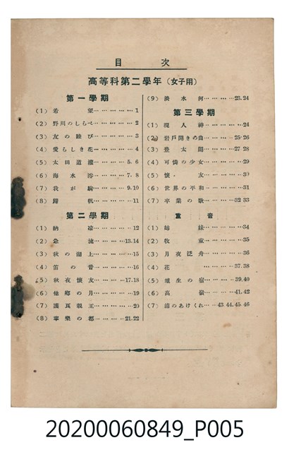 2020.006.0849 日本教育唱歌研究會編《新定兒童唱歌》高等科女子一二年用