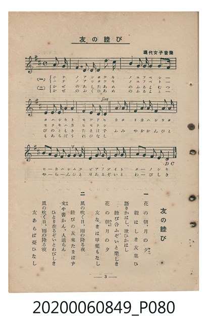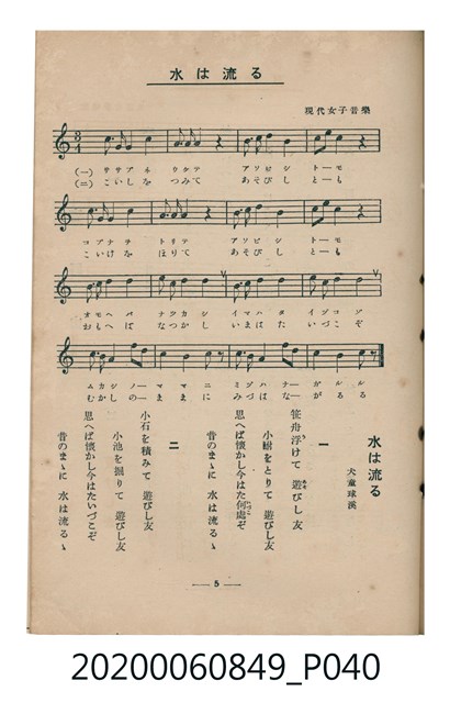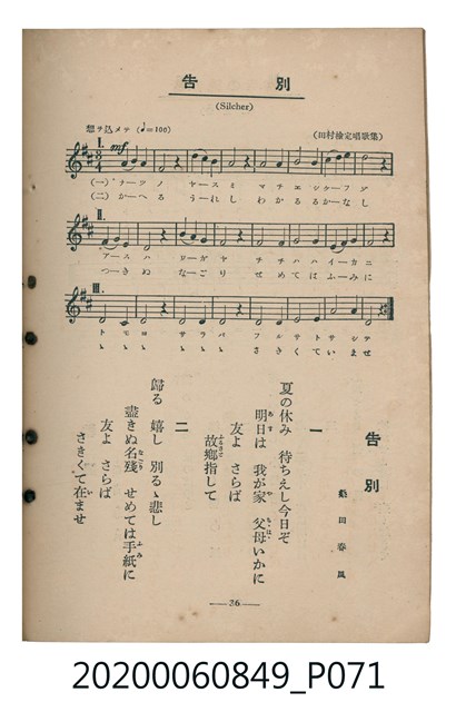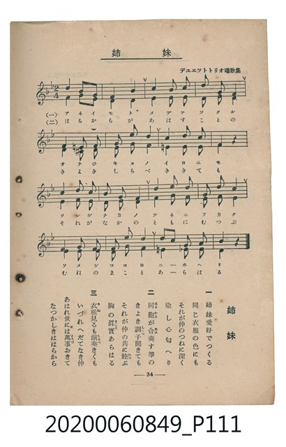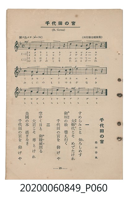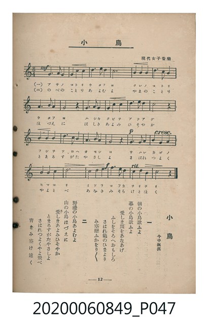 日本教育唱歌研究會編《新定兒童唱歌》高等科女子一二年用