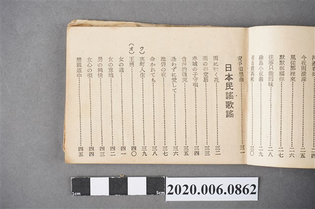 1.本件長10.3公分、寬7.2公分、高0.1公分,為美華閣酒家的歌謠本(歌詞本)。
