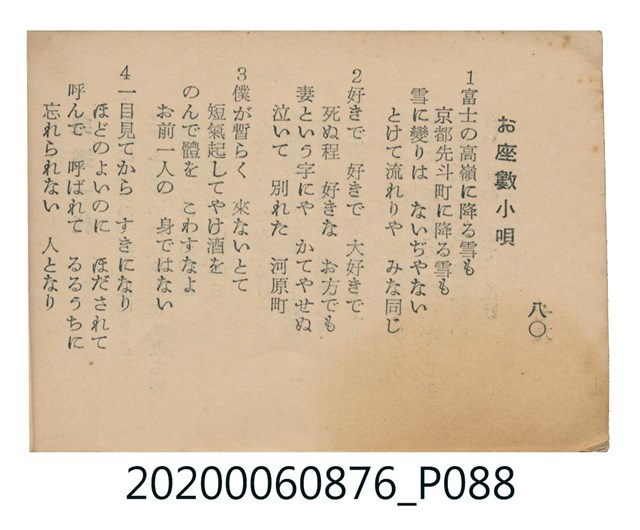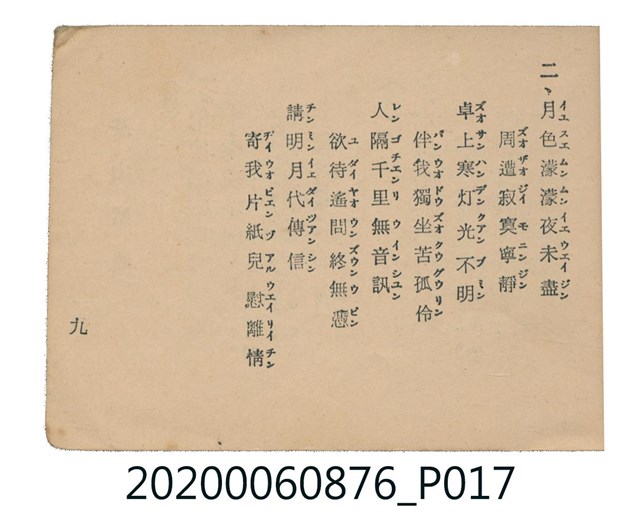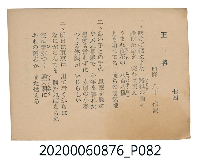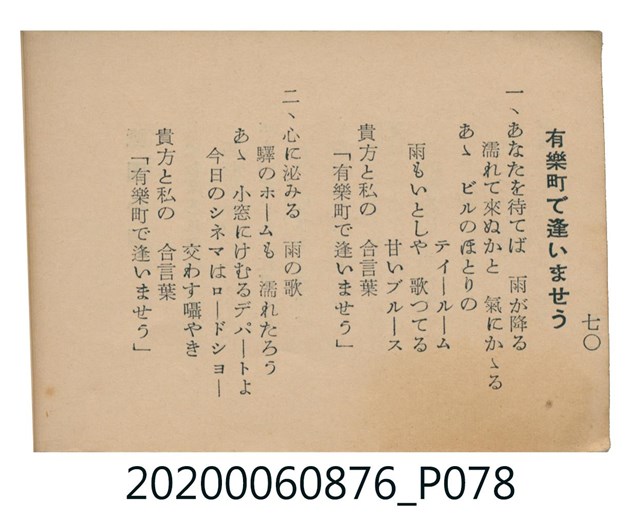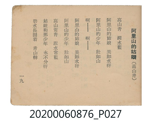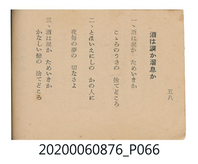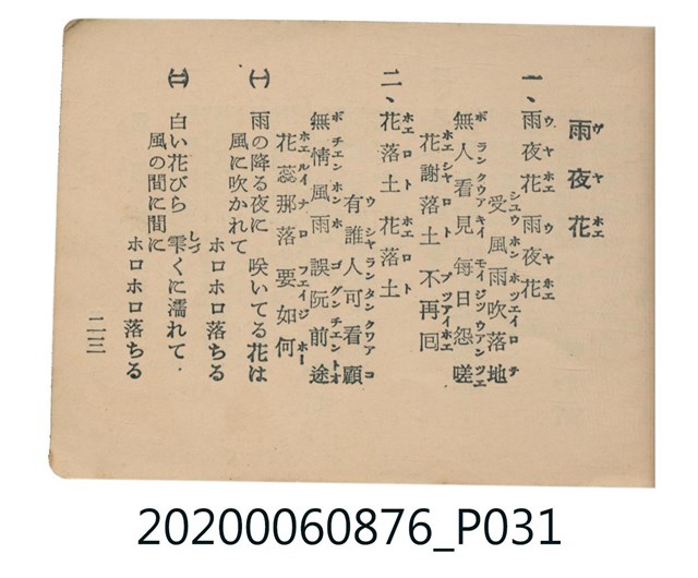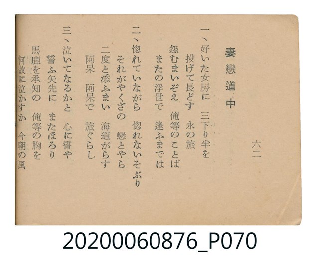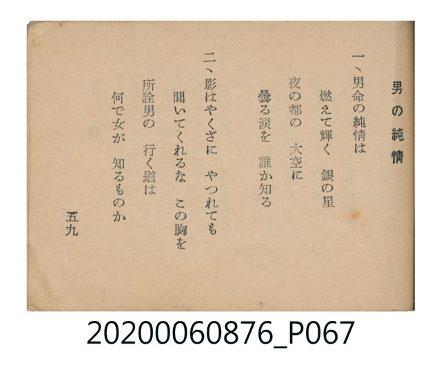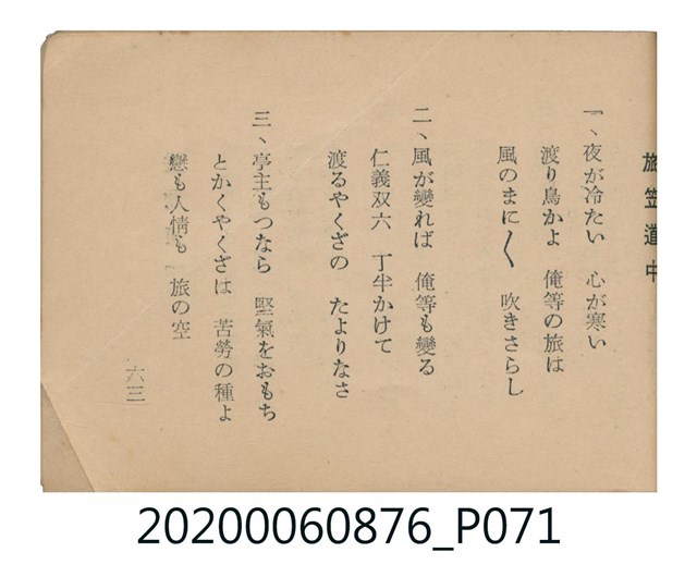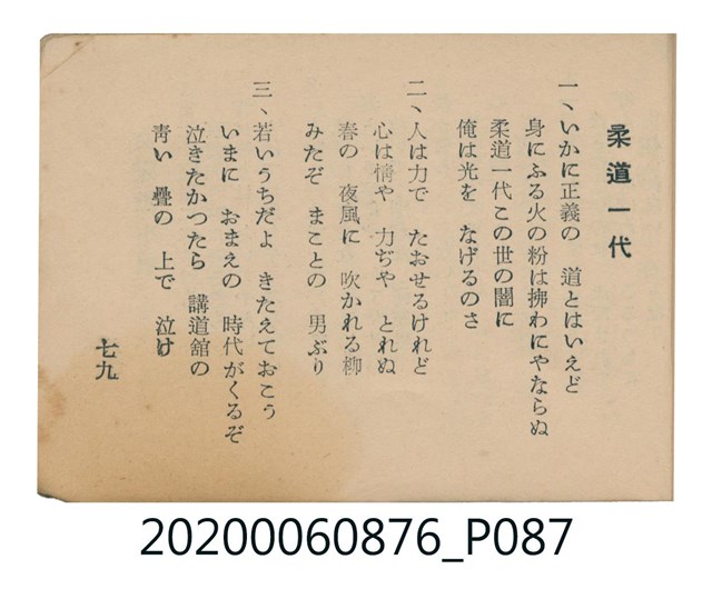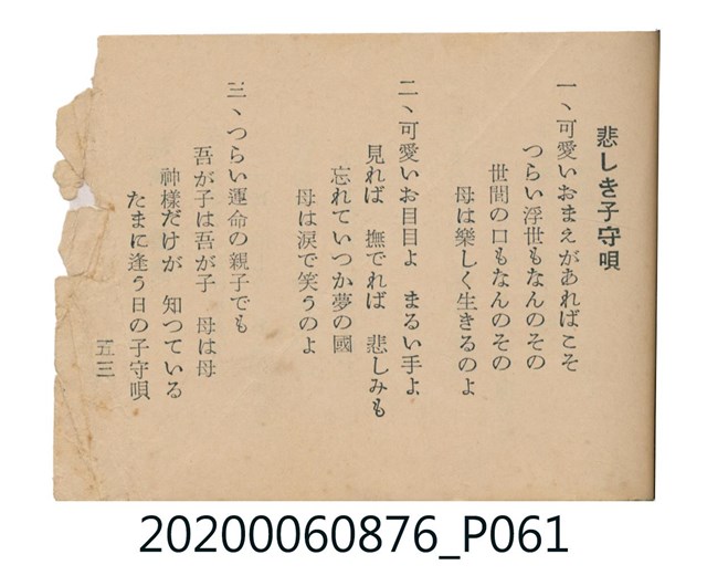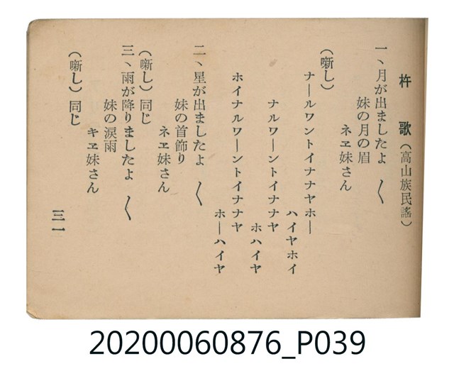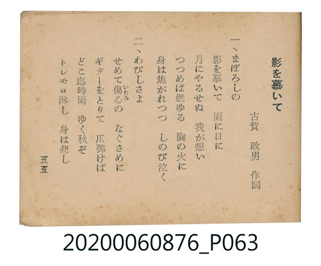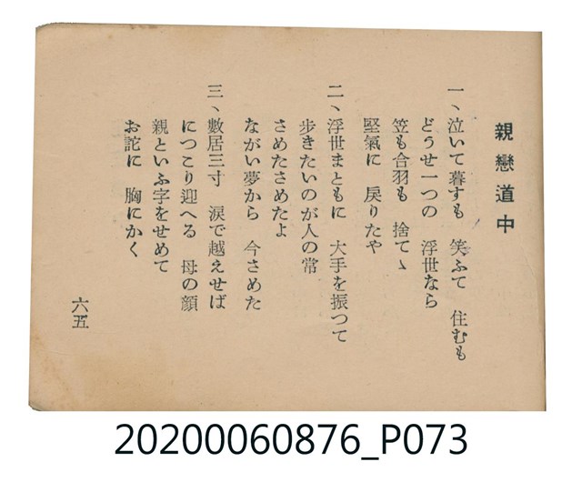1.本物件為日本航空中日歌謠集,封面上印有中國龍柱與2盞燈籠,上面並寫有「中日歌謠集」,背面則印有日本航空公司台北分公司的住址「臺北市中山北路一段143號」及電話號碼,還有商標,整個物件因收藏關係,有些許斑駁與褪色。