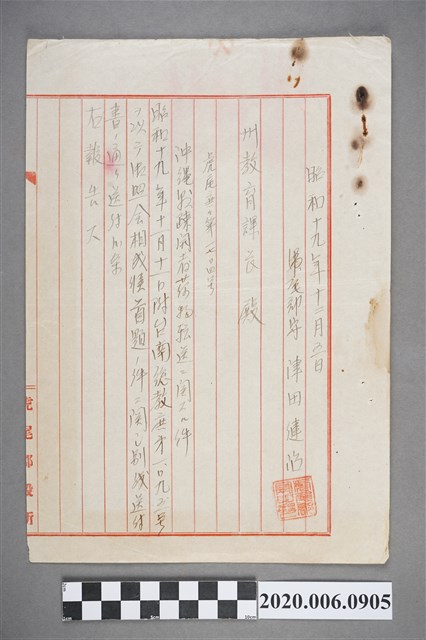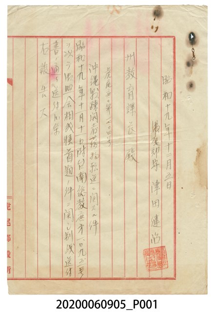 2020.006.0905 1944年12月5日虎尾郡守寄臺南州教育課長信件