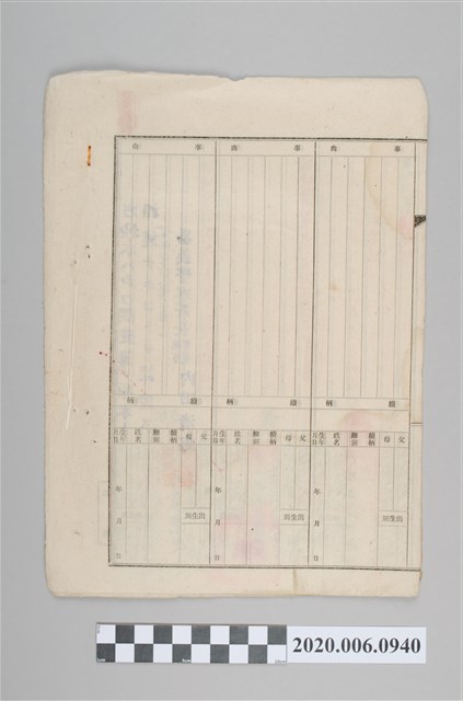 本件長19公分、寬26公分、高0.1公分。為戰時造成之意外災害證明書,資料以棉繩綁起,為昭和18年(1943)11月22日發行,經手人事為大阪府知事河原田稼吉,後方附上文件為個案證明書,包含受害者之籍貫、住所、危害狀況、給付金等相關資料。