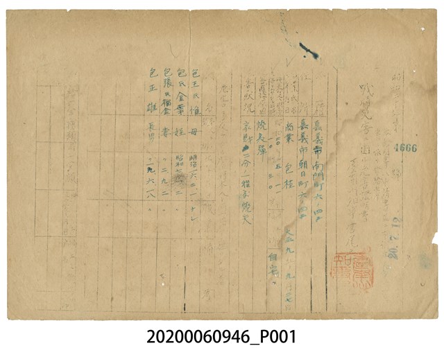 戰時造成的意外災害證明書第4666號(昭和20年7月12日發行)