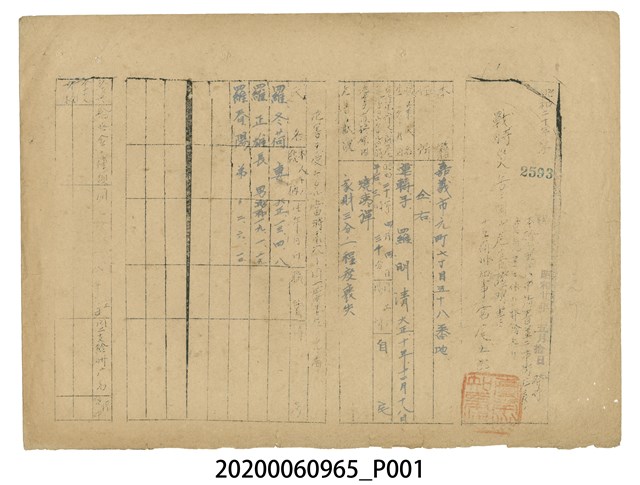 戰時造成的意外災害證明書第2593號(昭和20年5月10日發行)