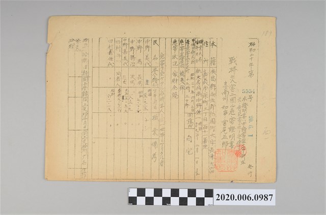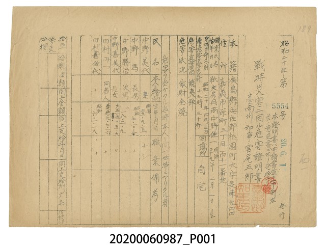 2020.006.0987 戰時造成的意外災害證明書第5554號(昭和20年6月1日發行)