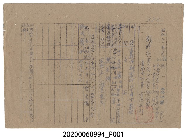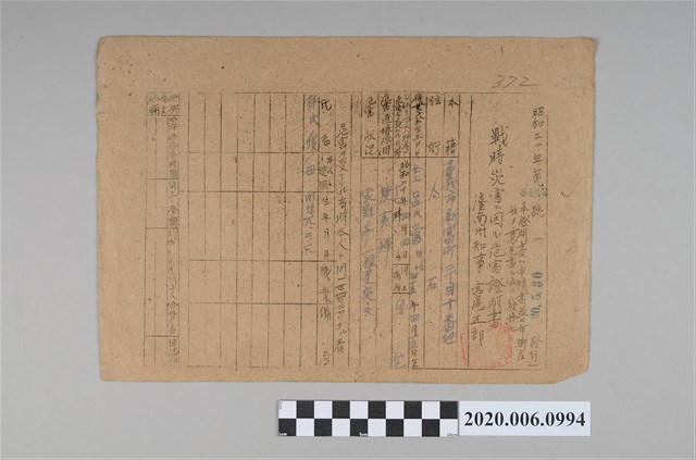 2020.006.0994 戰時造成的意外災害證明書第8442號(昭和20年5月30日發行)
