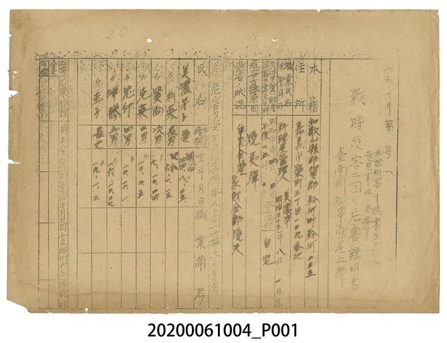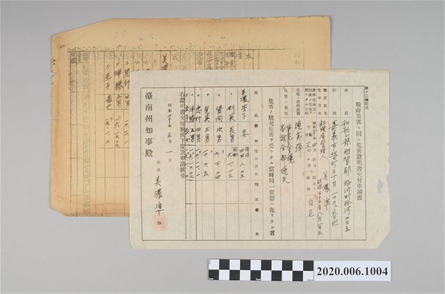 2020.006.1004 1945年5月1日美濃準家族之戰時造成的意外災害證明書與交付申請書