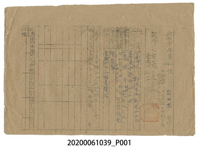 2020.006.1039 戰時造成的意外災害證明書第8549號(昭和20年5月30日發行)