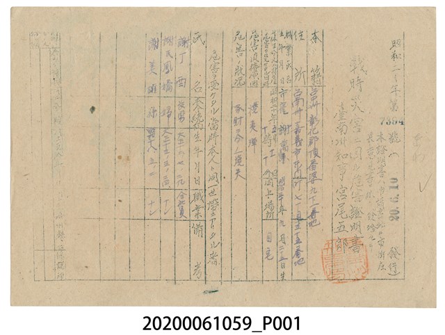 2020.006.1059 戰時造成的意外災害證明書第7394號(昭和20年6月10日發行)