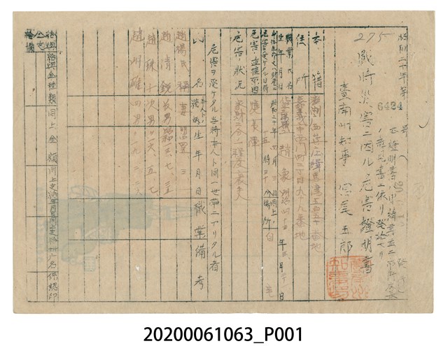 戰時災害證明書、臺南州