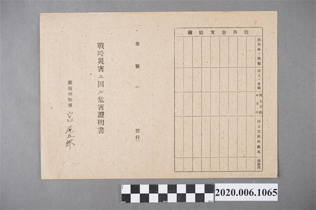 2020.006.1065 1945年4月3日廖林墩家族之戰時造成的意外災害證明書