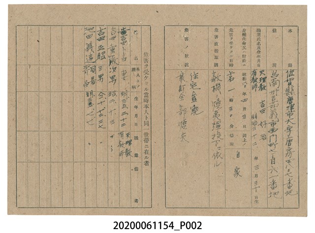 戰時造成的意外災害證明書第10485號(昭和20年6月10日發行)