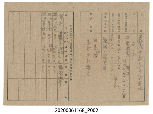 戰時造成的意外災害證明書第10500號(昭和20年6月10日發行)