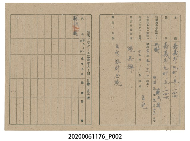 戰時造成的意外災害證明書第10508號(昭和20年6月10日發行)