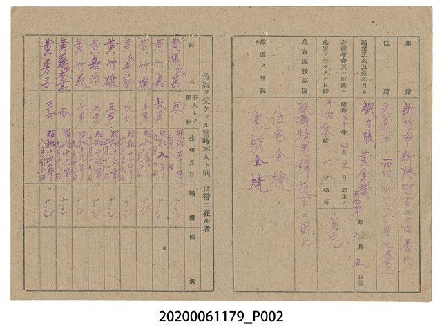 戰時造成的意外災害證明書第10513號(昭和20年6月10日發行)