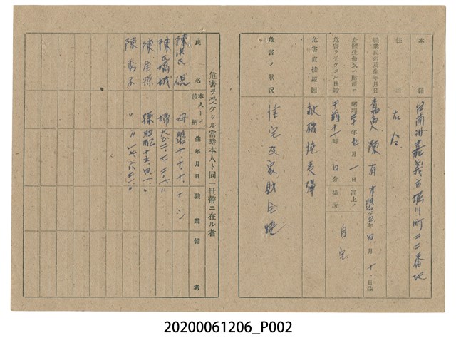戰時造成的意外災害證明書第10541號(昭和20年6月10日發行)
