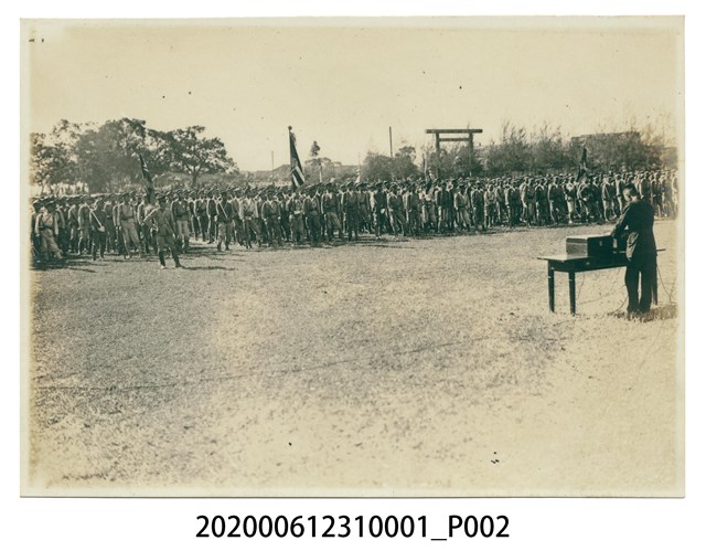 1.本物件為宜蘭農林學校接受軍事訓練之照片,一共6張,左排第1張為學校校旗,第2張為宜蘭農林學校學生大合照,第1排的學生以蹲姿入鏡,後面各排則依照不同階梯分層入鏡,所有學生皆著軍訓服裝、戴帽子並持槍,其餘各張則為學生接受不同之軍事訓練,有在海邊亦有在草堆中,所有照片皆有些許泛黃但保存尚稱良好。2.臺北州立宜蘭農林學校,創立於1926年,在日治時期為宜蘭地區最高學府,屬「實業學校」類,入學資格為小學畢業後考入,修業年限為5年,前4年授普通課桯,第5年分農藝、森林科修習專業課程,迨至1941年,因受第二次世界大戰的影響,修業年限從5年濃縮為4年,惟學校當時在縮短課程時十分慎重,只將部份課程予以濃縮,因而後來在銓敘資格時仍被視同五年制職校畢業,今為國立宜蘭大學。