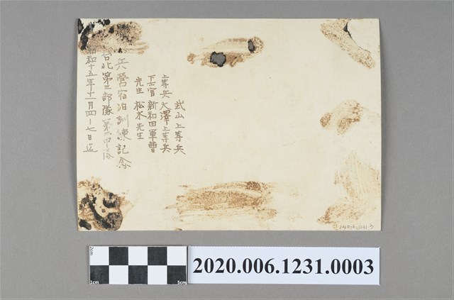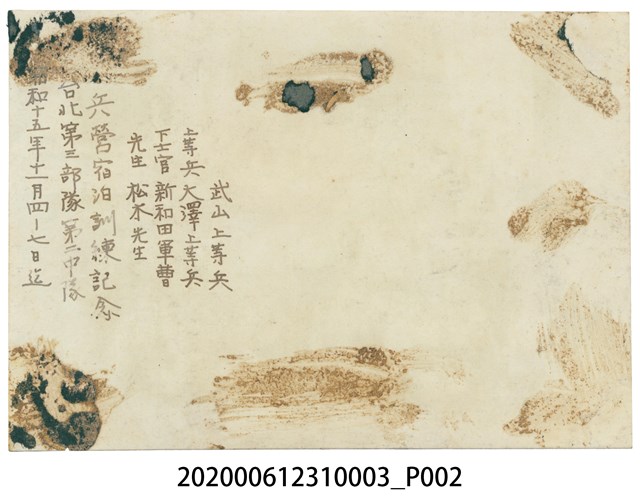1.本物件為宜蘭農林學校接受軍事訓練之照片,一共6張,左排第1張為學校校旗,第2張為宜蘭農林學校學生大合照,第1排的學生以蹲姿入鏡,後面各排則依照不同階梯分層入鏡,所有學生皆著軍訓服裝、戴帽子並持槍,其餘各張則為學生接受不同之軍事訓練,有在海邊亦有在草堆中,所有照片皆有些許泛黃但保存尚稱良好。2.臺北州立宜蘭農林學校,創立於1926年,在日治時期為宜蘭地區最高學府,屬「實業學校」類,入學資格為小學畢業後考入,修業年限為5年,前4年授普通課桯,第5年分農藝、森林科修習專業課程,迨至1941年,因受第二次世界大戰的影響,修業年限從5年濃縮為4年,惟學校當時在縮短課程時十分慎重,只將部份課程予以濃縮,因而後來在銓敘資格時仍被視同五年制職校畢業,今為國立宜蘭大學。