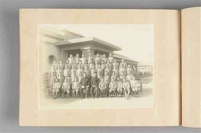 1.本物件為清水公學校畢業紀念冊,封面為白色,四周畫有紅色花邊,紀念冊右邊有2個圓洞,可以穿過繩子將之固定,封面上寫有「卒業記念寫真帖」,下方寫有清水公學校及撮影時間,最下方則有「清水.修竹寫真館製」字樣,整個物件有明顯斑駁褪色並有些許毀損。 2.1897年,日人為使臺灣人學習本國語而於鰲峰山下成立「臺中國語傳習所牛罵頭分教場」,1921年改名為「清水第一學校」,西元1925年改為「清水公學校」(現今校舍建於此一時期),1941年又改名為「清水南國民學校」, 1945年改為「清水國民學校」,1968年改為「清水國小」。學校大門及園區內保存著歷史原味,U型教室建築設計精細,英式磚砌手法為當時期典範,通風口、防蟲網等設施,都是人性化考量,學者亦表示完整保存後(含蓋校園所有日治時期校舍、宿舍等),將是全國第一宗校園古蹟,且是唯一「活的古蹟」,結合古蹟教育與學校教育,開全國先例。