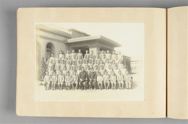 1.本物件為清水公學校畢業紀念冊,封面為白色,四周畫有紅色花邊,紀念冊右邊有2個圓洞,可以穿過繩子將之固定,封面上寫有「卒業記念寫真帖」,下方寫有清水公學校及撮影時間,最下方則有「清水.修竹寫真館製」字樣,整個物件有明顯斑駁褪色並有些許毀損。 2.1897年,日人為使臺灣人學習本國語而於鰲峰山下成立「臺中國語傳習所牛罵頭分教場」,1921年改名為「清水第一學校」,西元1925年改為「清水公學校」(現今校舍建於此一時期),1941年又改名為「清水南國民學校」, 1945年改為「清水國民學校」,1968年改為「清水國小」。學校大門及園區內保存著歷史原味,U型教室建築設計精細,英式磚砌手法為當時期典範,通風口、防蟲網等設施,都是人性化考量,學者亦表示完整保存後(含蓋校園所有日治時期校舍、宿舍等),將是全國第一宗校園古蹟,且是唯一「活的古蹟」,結合古蹟教育與學校教育,開全國先例。