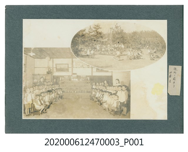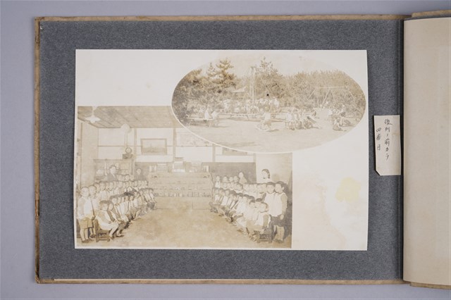 1.本物件是新竹第一幼稚園第十七屆畢業紀念冊。採橫式印刷,硬殼線裝。封面以灰色為底,由上而下依序書寫「新竹第一幼稚園」、「第十七回」、「保育終了記念」、「昭和十三年三月」等4排字。內容收錄園長、保姆、幼兒個人照與合照,以及校園景觀。2.新竹第一幼稚園成立於1921年,初名新竹幼稚園,園址位在新竹尋常高等小學校(今新竹東門國小),由小學校校長兼任園長。1923年,因新竹第二幼稚園成立,而改稱新竹第一幼稚園。其收托對象以日籍幼童為主,年限1年。二次大戰末期停止收托,戰後未再復園。