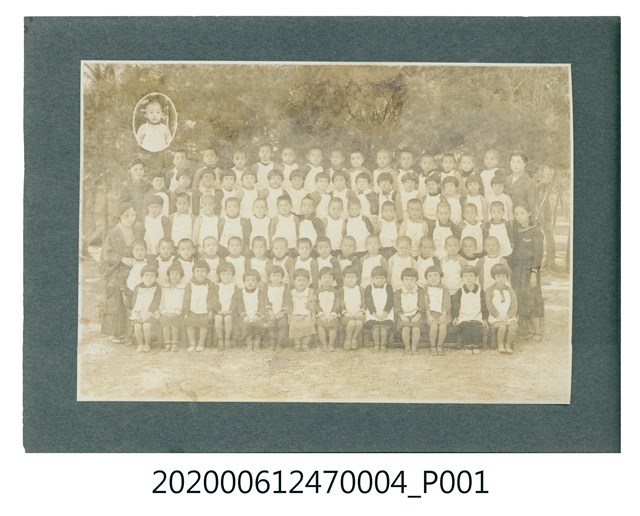 1.本物件是新竹第一幼稚園第十七屆畢業紀念冊。採橫式印刷,硬殼線裝。封面以灰色為底,由上而下依序書寫「新竹第一幼稚園」、「第十七回」、「保育終了記念」、「昭和十三年三月」等4排字。內容收錄園長、保姆、幼兒個人照與合照,以及校園景觀。2.新竹第一幼稚園成立於1921年,初名新竹幼稚園,園址位在新竹尋常高等小學校(今新竹東門國小),由小學校校長兼任園長。1923年,因新竹第二幼稚園成立,而改稱新竹第一幼稚園。其收托對象以日籍幼童為主,年限1年。二次大戰末期停止收托,戰後未再復園。