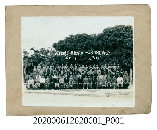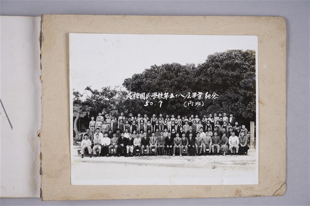 1.苑裡國民學校第三十九屆畢業紀念冊。採橫式印刷,硬殼線裝。封面以灰色為底,右上部有書本、羅盤、葉子、甲蟲等圖象,左半部由上而下依序書寫「昭和十七年三月」、「第三十九回」、「卒業記念」、「苑裡國民學校」等4排字。內容包括校長、教職員、畢業生及校景等多張照片。2.苑裡國民學校前身是1898年設立的苗栗國語傳習所苑裡分教場,童年改為苑裡公學校,初期借用慈和宮左側廂房上課。1941年,改稱苑裡國民學校,直到日本統治結束。戰後初期,改為苑裡鎮中心國民學校;1950年,更名為苑裡國民學校。1968年,因九年義務教育實施,改為苑裡國民小學,至今。