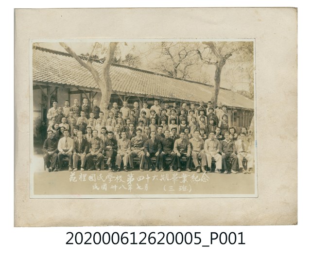 1.苑裡國民學校第三十九屆畢業紀念冊。採橫式印刷,硬殼線裝。封面以灰色為底,右上部有書本、羅盤、葉子、甲蟲等圖象,左半部由上而下依序書寫「昭和十七年三月」、「第三十九回」、「卒業記念」、「苑裡國民學校」等4排字。內容包括校長、教職員、畢業生及校景等多張照片。2.苑裡國民學校前身是1898年設立的苗栗國語傳習所苑裡分教場,童年改為苑裡公學校,初期借用慈和宮左側廂房上課。1941年,改稱苑裡國民學校,直到日本統治結束。戰後初期,改為苑裡鎮中心國民學校;1950年,更名為苑裡國民學校。1968年,因九年義務教育實施,改為苑裡國民小學,至今。