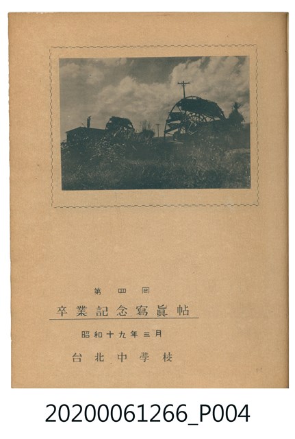 1.本物件是私立臺北中學校第四屆畢業紀念冊。採直式印刷,精裝。封面以黑色為底,左上角為校徽。內頁封面上半部為校園景觀,下半部有「第四回卒業記念寫真帖」、「昭和十九年三月 台北中學校」等字樣。內容收錄校舍、校園及創辦人、校長、教職員、畢業生等多張照片。