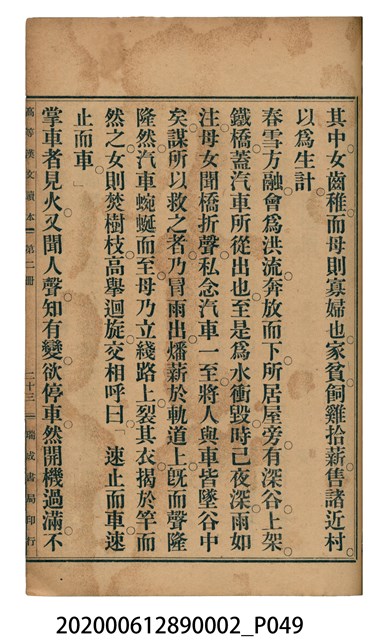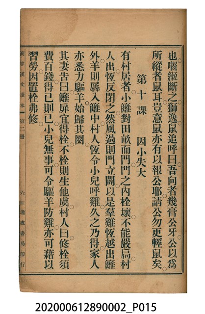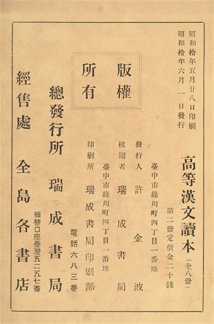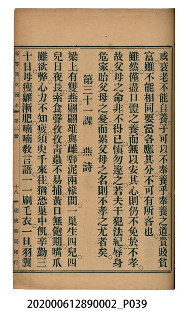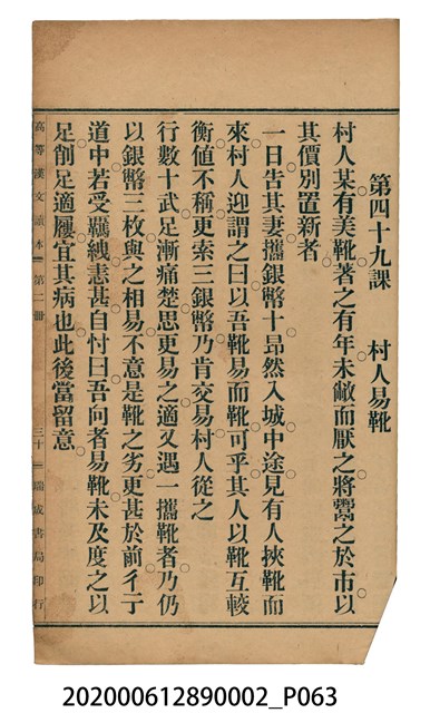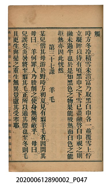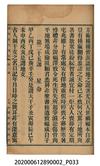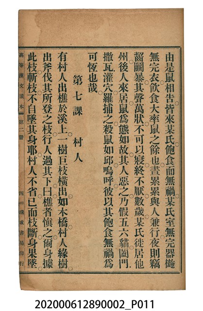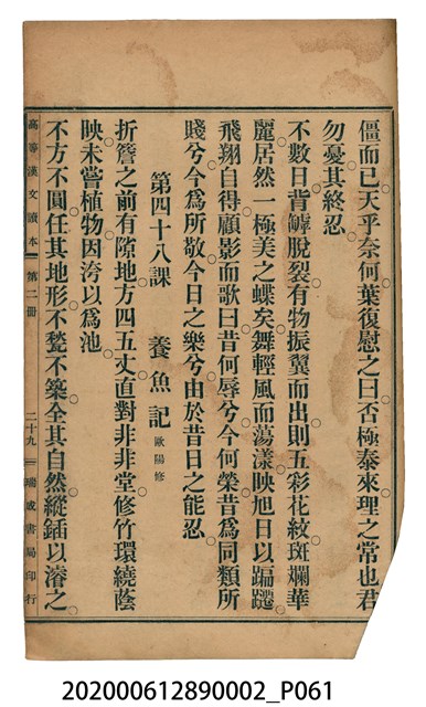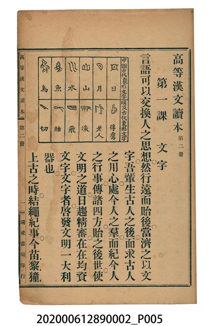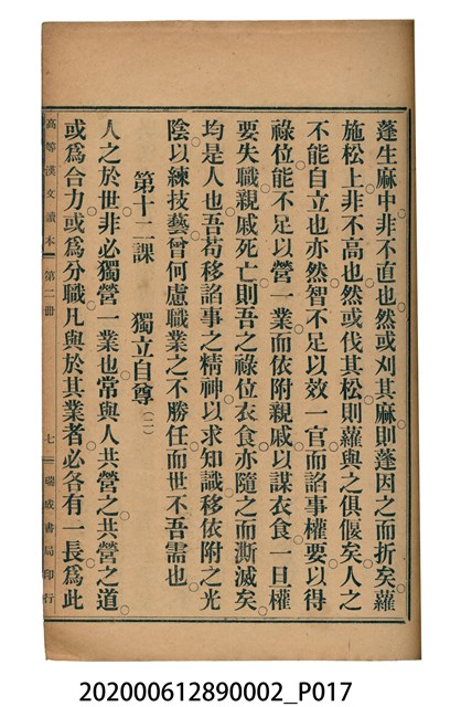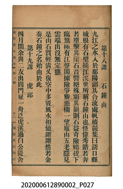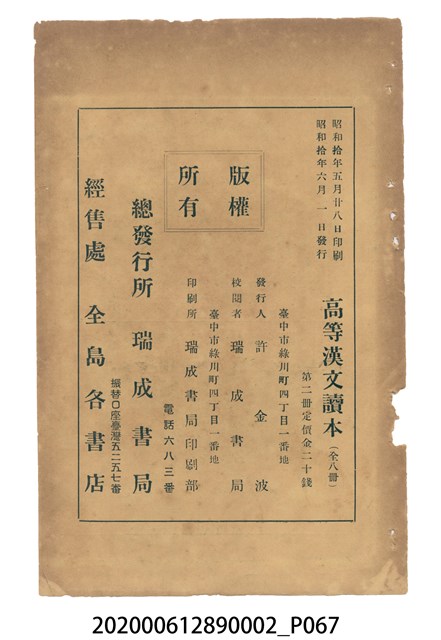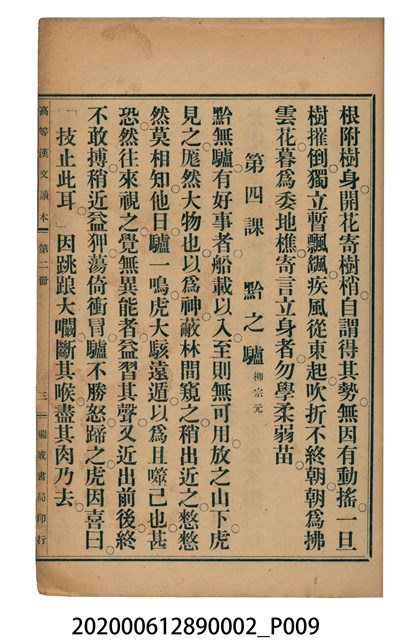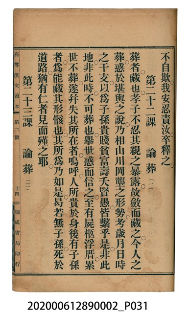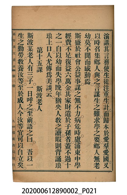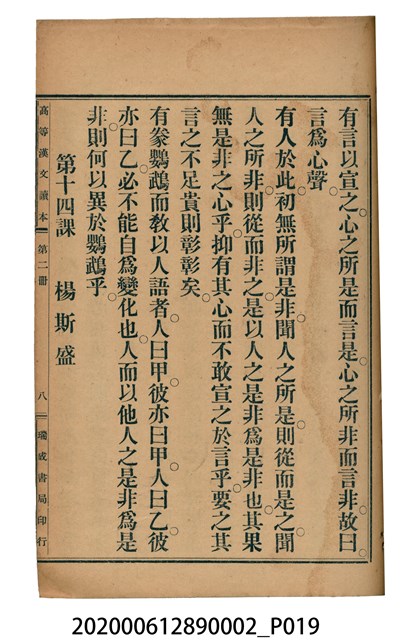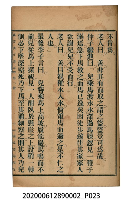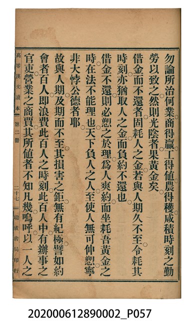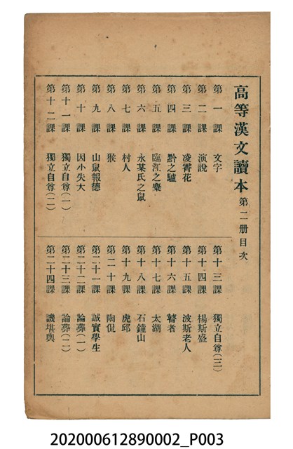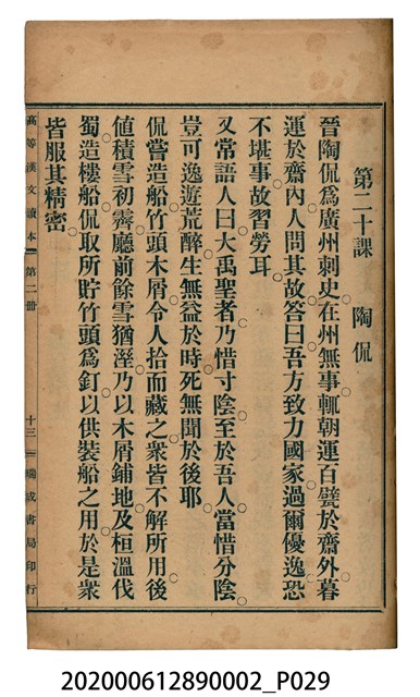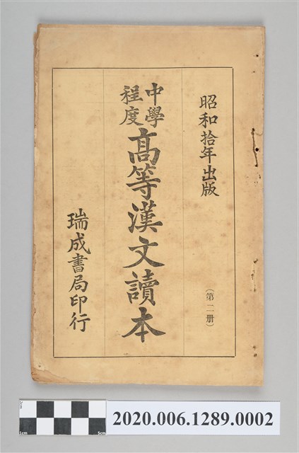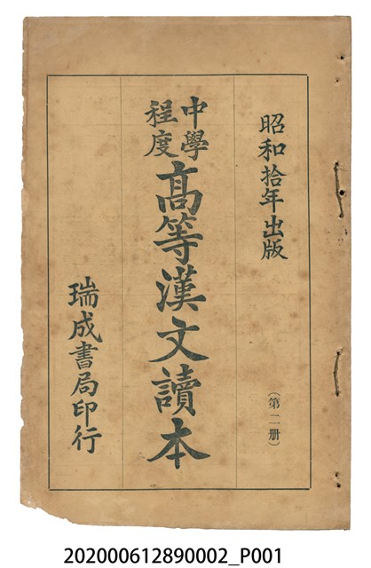 2020.006.1289.0002 許金波著《中學程度高等漢文讀本第二冊》