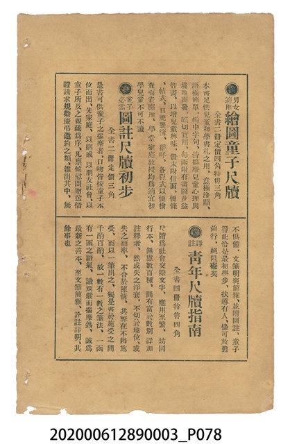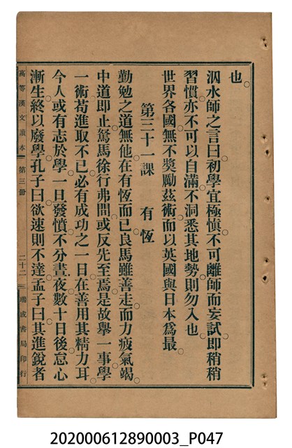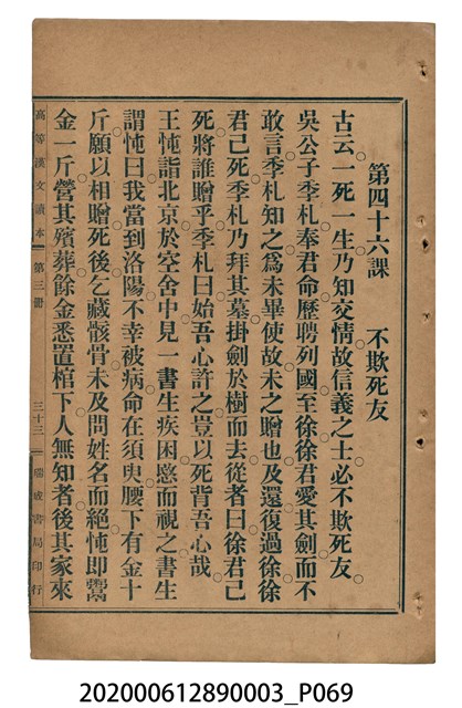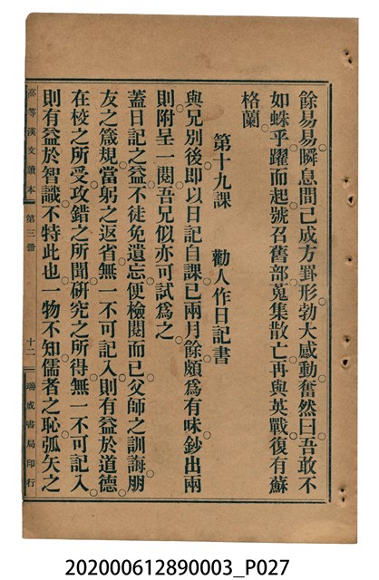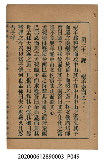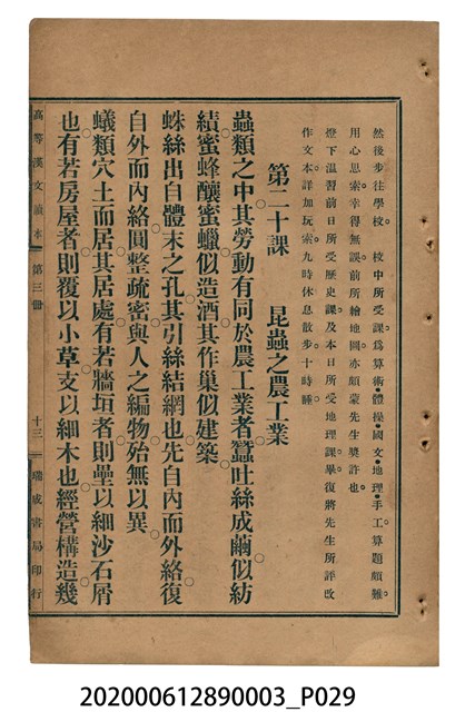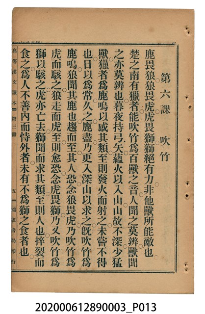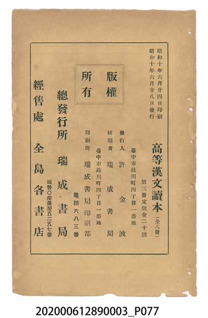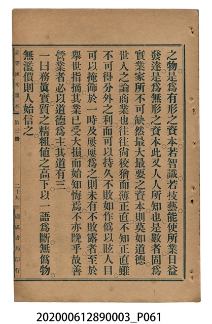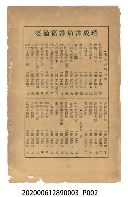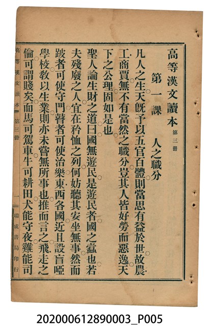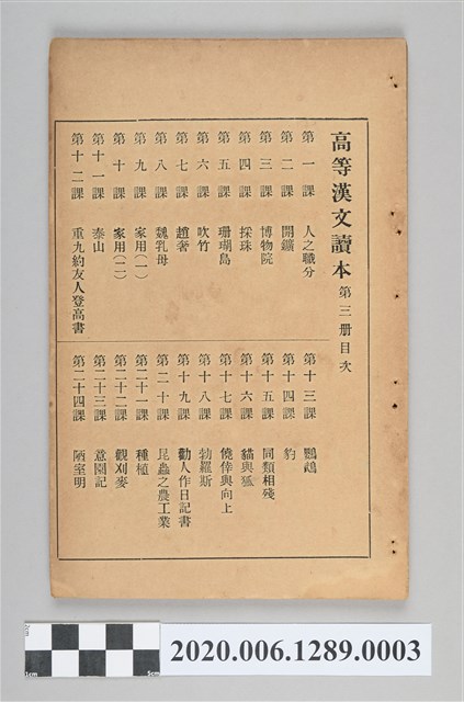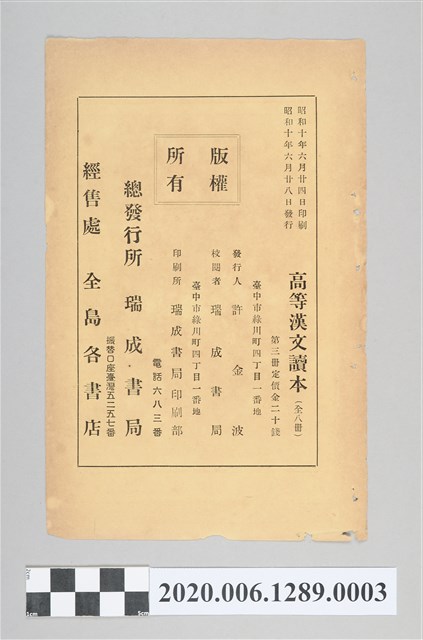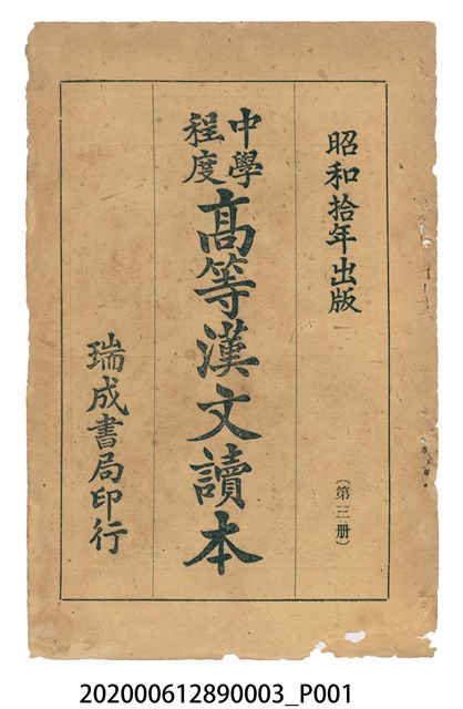 1.本物件為瑞成書局印行中學程度高等漢文讀本,一共6件,書的保存大致完整,只是收藏關係已經明顯泛黃,還有右上角的書只剩下封面跟封底。