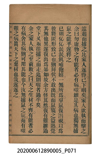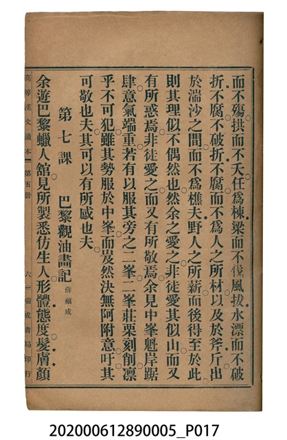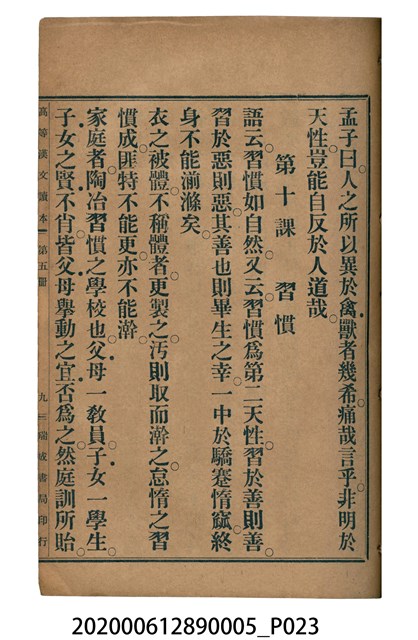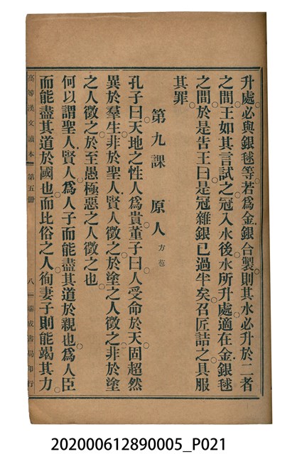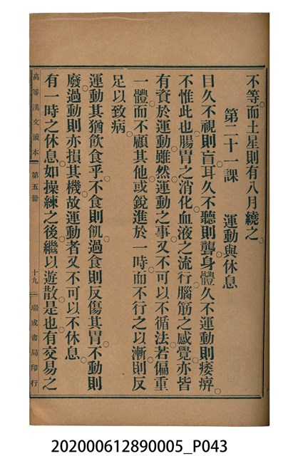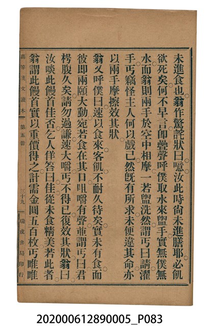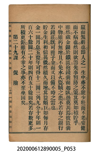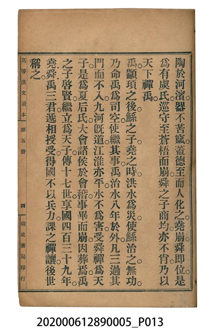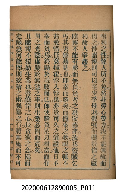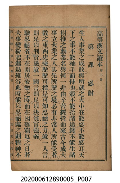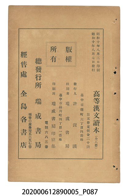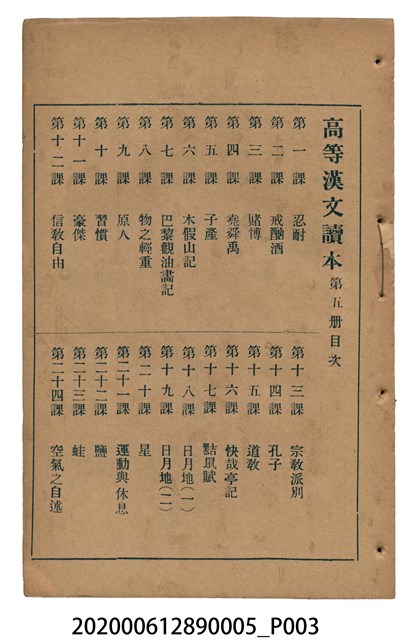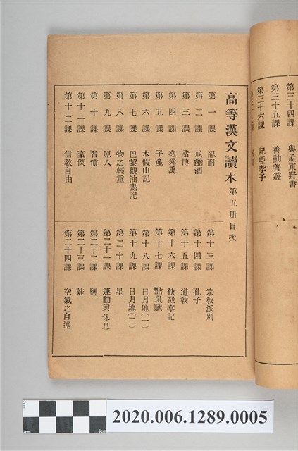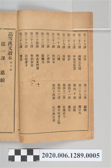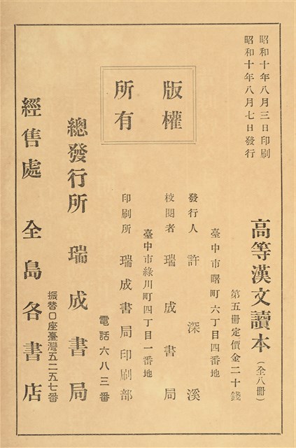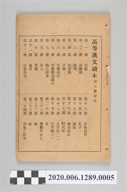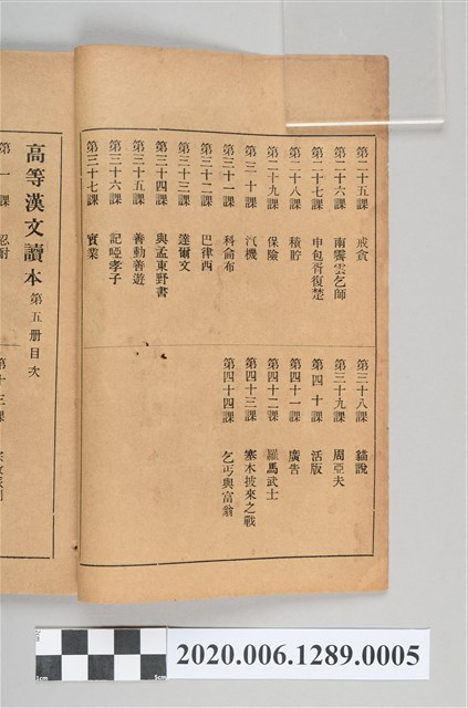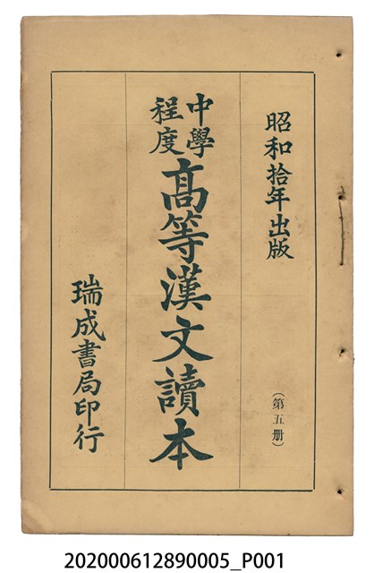 1.本物件為瑞成書局印行中學程度高等漢文讀本,一共6件,書的保存大致完整,只是收藏關係已經明顯泛黃,還有右上角的書只剩下封面跟封底。
