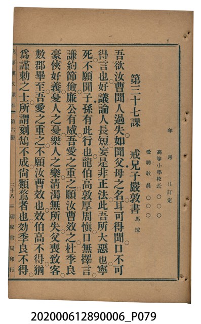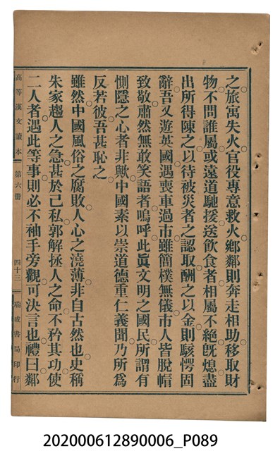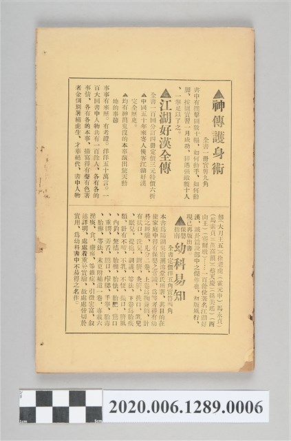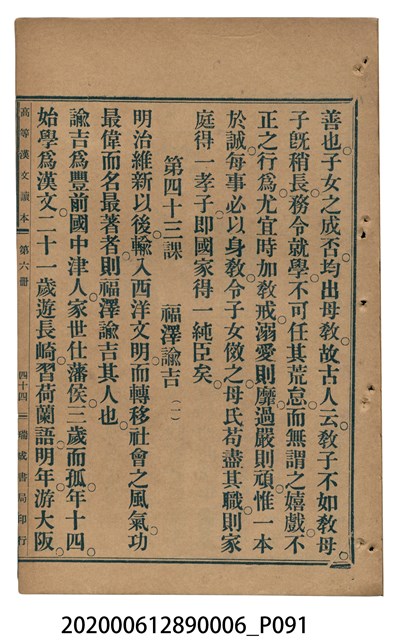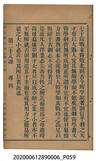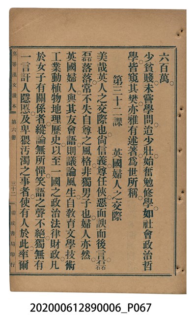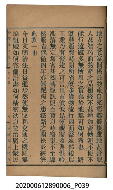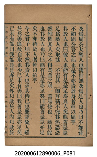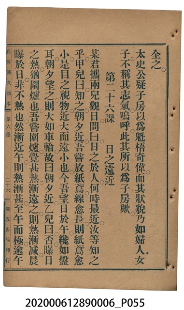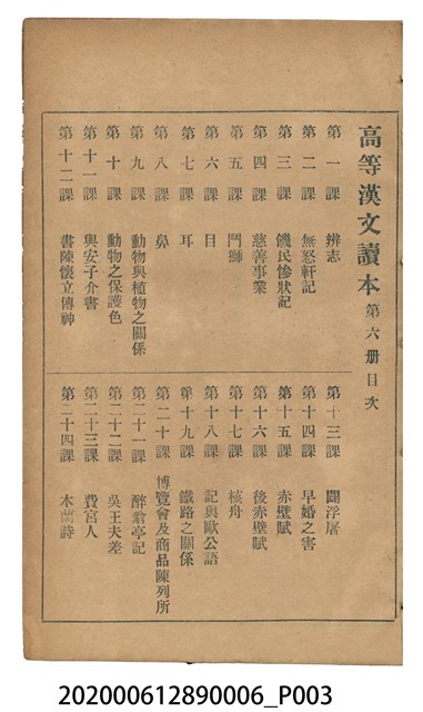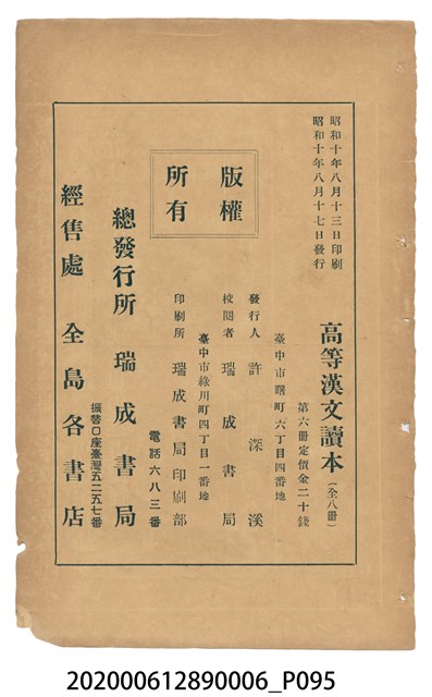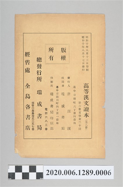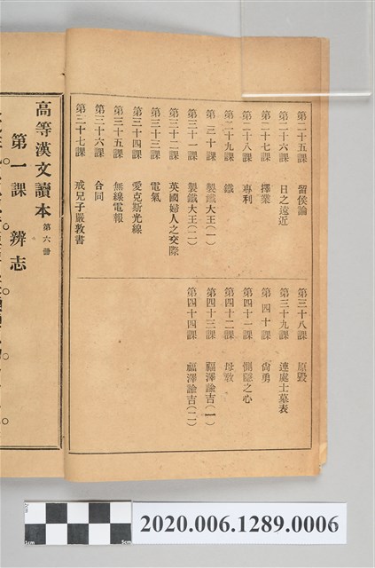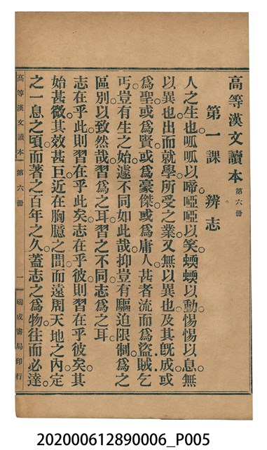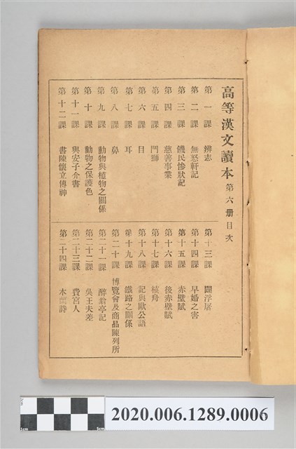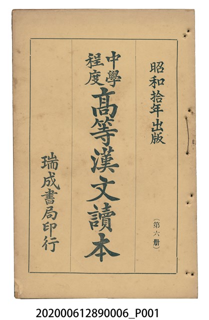 1.本物件為瑞成書局印行中學程度高等漢文讀本,一共6件,書的保存大致完整,只是收藏關係已經明顯泛黃,還有右上角的書只剩下封面跟封底。