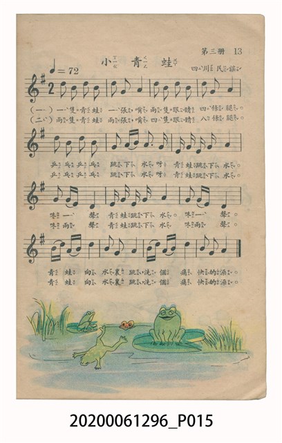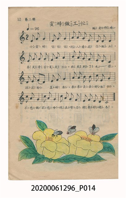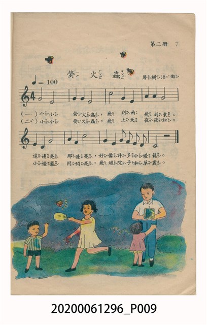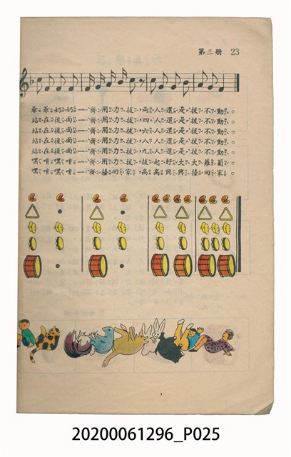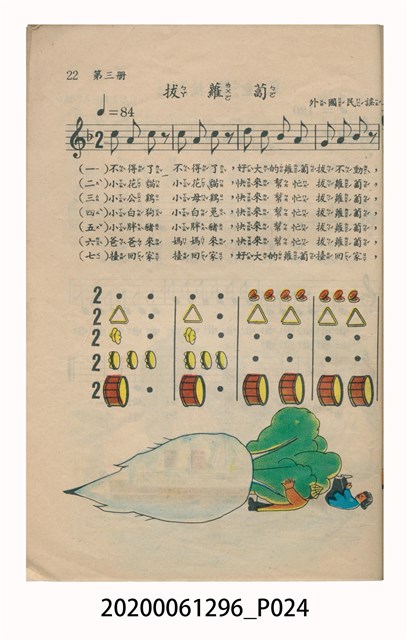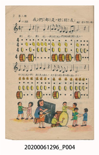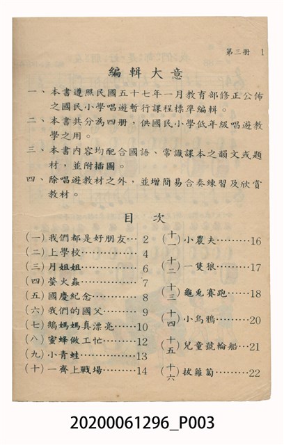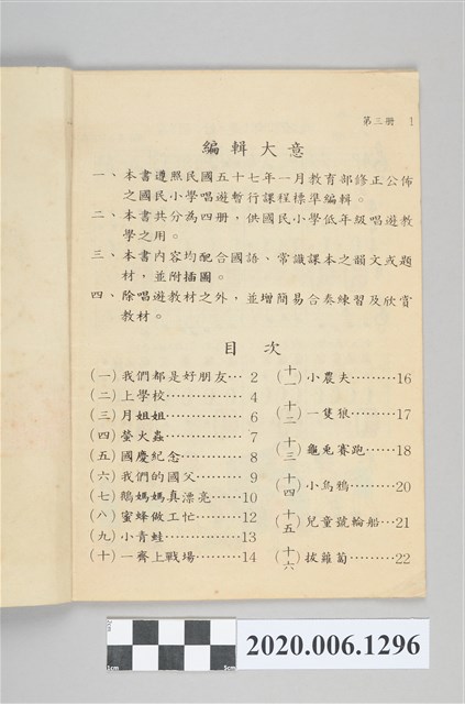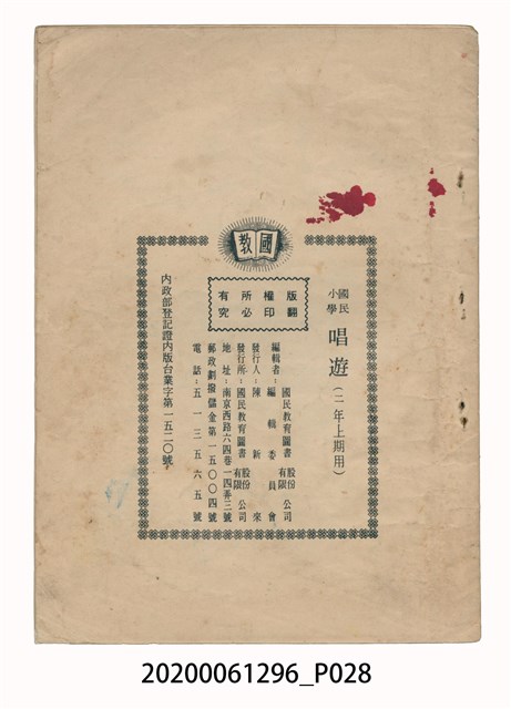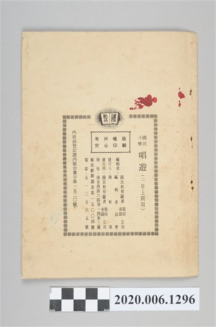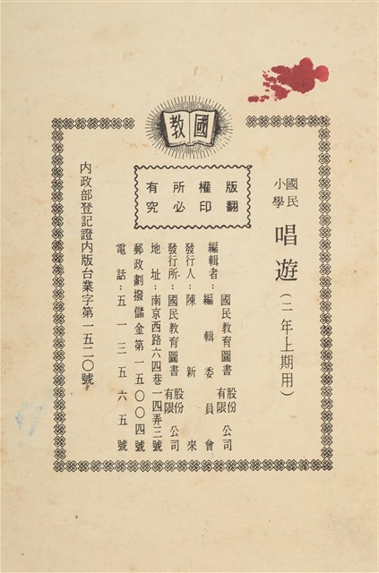 1.本物件為國民小學唱遊集,為戰後教科書,上面寫有有編輯者輯發行所為國民教育圖書股份有限公司。