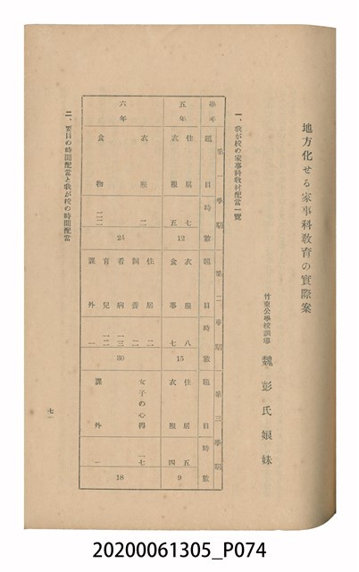 1.陳佩佩,2003。 從圖畫教科書看日治時期臺灣初等學校美術教育,議藝份子,5:23-40。2.滝澤佳奈枝,2016。日治時期女子教育家政科,臺灣學通訊,94:12-13。