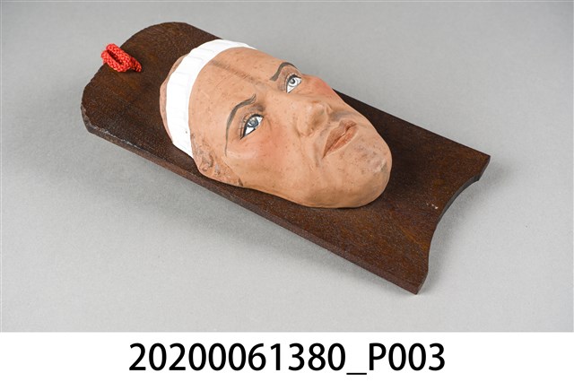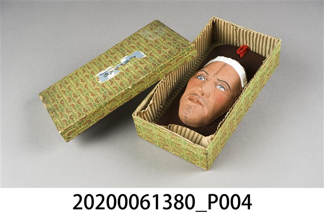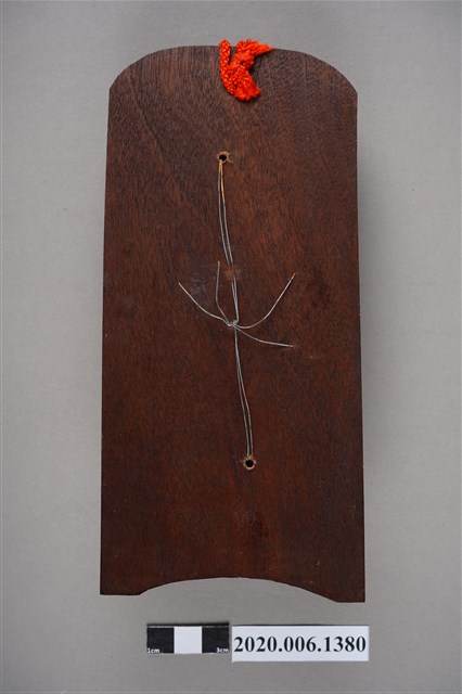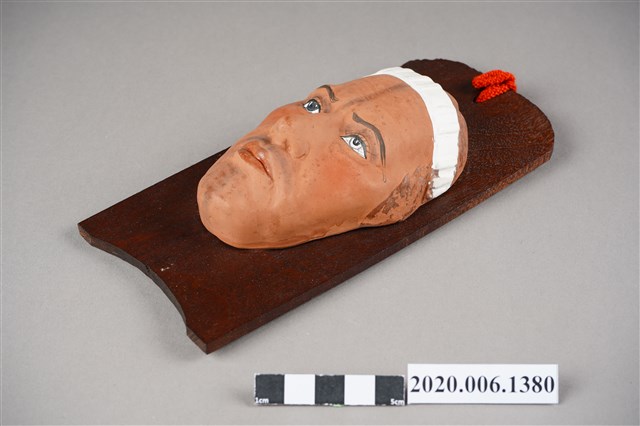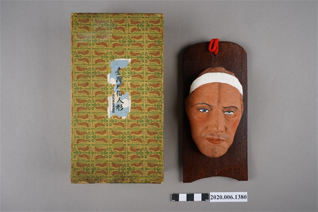 本物件為臺灣原住民人形裝飾品。上有小孔和紅繩,可吊掛,附有包裝用紙盒,紙盒上貼有「臺灣蕃人風俗人形 臺中州樋口兄弟商會謹置」字樣標籤。