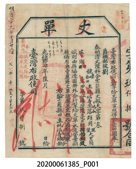 丈單、臺灣布政使司、宜蘭縣