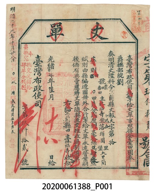 丈單、臺灣布政使司、宜蘭縣