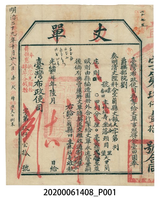 宜蘭縣丈報大字第8號田主.宜蘭縣田主. 字第9010號
