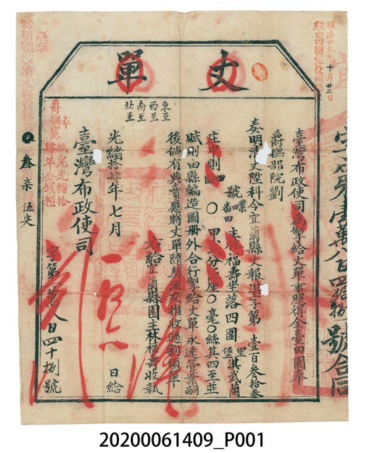 丈單、臺灣布政使司、宜蘭縣