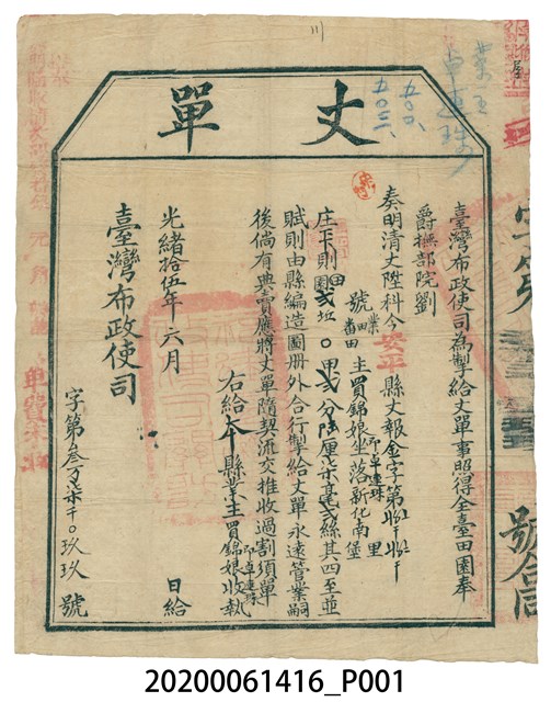 安平縣丈報金字第????號.新化南里.堡庄.字第37099號