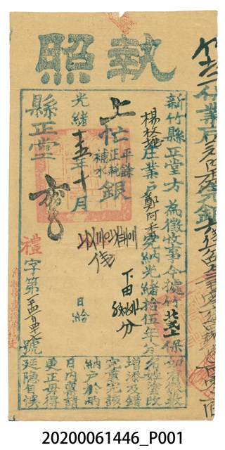 新竹縣正堂方徵收竹北式上保楊枚厝庄.上忙平餘,正耗,補水 銀.禮字第1447號