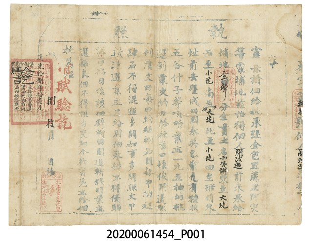 官印"淡防分府.北港金土二社番.業戶金生戳記".道光18年11月.第82號驗訖.查該墾係番業,漢佃供納番租.蓋印發給執照