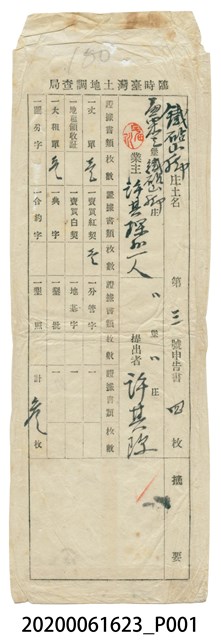 出賣盡斷根埔園契字、臨時台灣土地調查局、六份庄、井仔頭