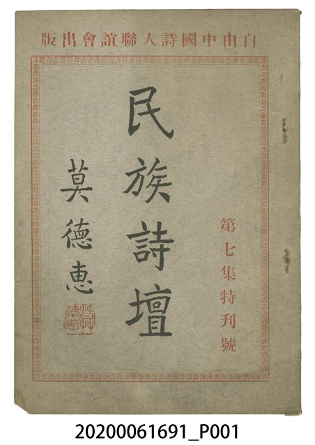 為「自由中國詩人聯誼會」出版刊物,莫德惠編輯。第七集特刊號主題「許世英先生九十華誕紀念特刊」,共30頁。見證戰後古典詩的發展。